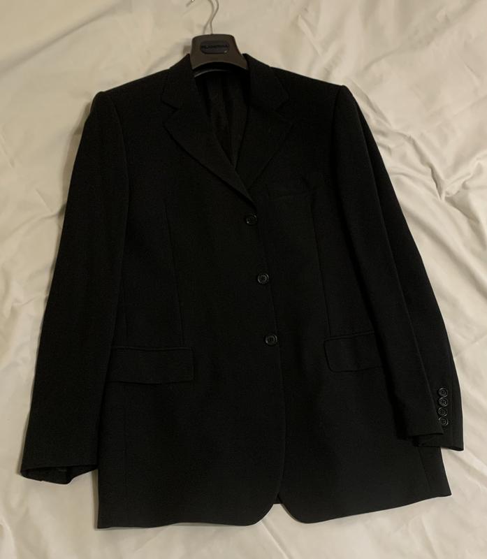 Чоловічий костюм Prandina Стан відмінний без пошкоджень та плям. Кишені в піджаку ще прошиті. Піджак: Напівобхват під руками 56,5 см Плечі 48 см Рукав від плеча 67 см Рукав по нижньому шву 45 см Спина довжина без коміра 81 см Штани: Напівобхват пояс 43 см Довжина штанини з поясом 110,5 см Посадка попереду 31 см Посадка позаду 47,5 см Ширина штанини низ 23 см