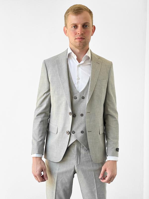 Классический мужской костюм – элегантность, проверенная временем! Повысьте свой стиль на новый уровень с этим классическим светло-серым костюмом, который сочетает в себе утонченность и безупречное качество. Идеальный выбор для деловых встреч, торжественных мероприятий и повседневного образа джентльмена. 🔹 Благородный серый оттенок - универсальный цвет, который подчеркивает статус и уверенность. 🔹 Безупречный крой - идеальная посадка, обеспечивающая комфорт и элегантный силуэт. 🔹 Комплект из пиджака, жилета и брюк - завершенный образ для уверенности в любой ситуации. 🔹 Премиальные материалы – долговечность и комфорт в каждой детали. 🔹 Стильные акценты - лацканы, карманы и продуманная фурнитура для завершенности образа. Создайте безупречный стиль с этим классическим мужским костюмом - ваш идеальный выбор для успеха! Состав ткани: 80% шерсть, 20% вискоза. РАЗМЕР 46 48 50 52 54 56 ПІДЖАК Рост 172см-182см 172см-182см 172см-182см 172см-182см 172см-182см 172см-182см Длина 69.5см 69.5см 71.5см 72.5см 73см 74.5см Плечи 43см 43.5см 44см 44.5см 46см 48см Груди 98см 100см 102см 106см 110см 114см Рукав 60.5см 61см 62.5см 63.5см 64см 65.5см Талия пиджака 91см 95см 98см 102см 106см 110см БРЮКИ Талия брюк 80см 83см 86см 92см 96см 98см Бедра 98см 100см 102см 106см 110см 112см
