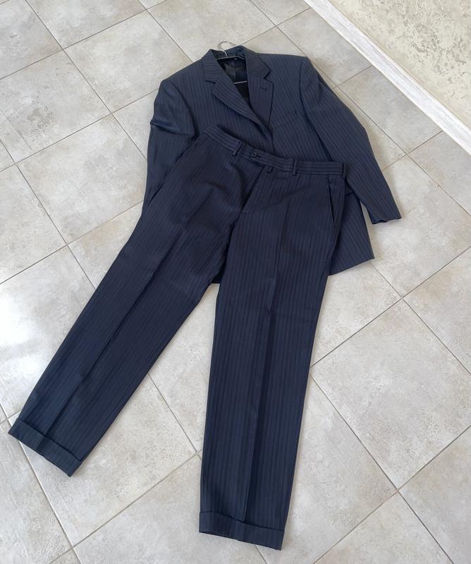 Заміри: Піджак: Рукав - 60,5 см Довжина ззаду - 73,5 см, спереду довше +-7 см Півобхват плечі - 48,5 см Штани: Довжина - 100 см Півобхват талії - 46 см Колір - темно-синій Без дефектів
