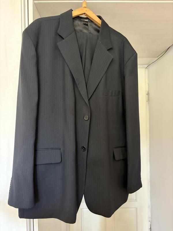 Розмір 58 Був одягнений двічі Довжина піджака: 77см Довжина рукава: 60см Ширина піджака: 62см Довжина штанів 104см Півобєм по поясу 55см Півобєм штанги внизу 26,5см