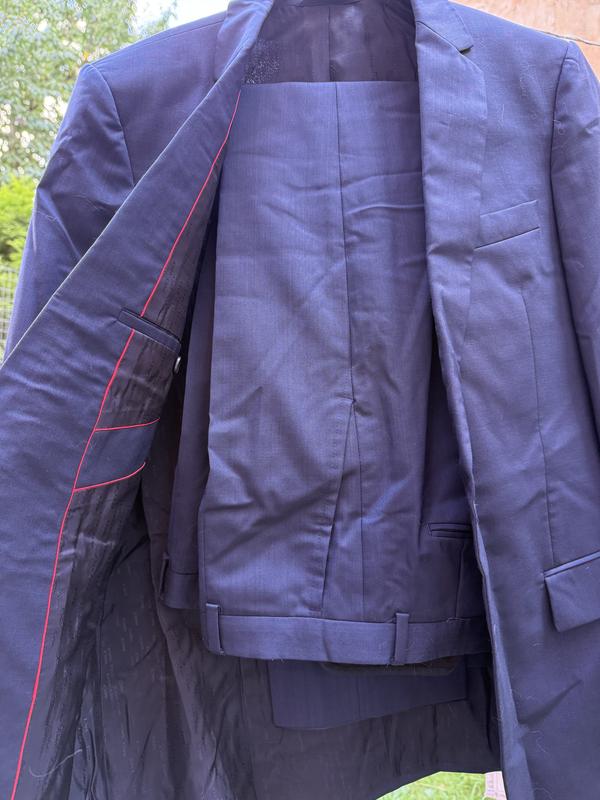 Чоловічий синій вовняний класичний костюм від HUGO BOSS Тип Класичний костюм Країна бренду Німеччина Розмір 46 Оригінал Заміри: Дов.піджака 73см. Дов.рукава64см. Дов.рукава від горловини 82см. Ширина спинки 50см. Дов. плеча 17см. Дов.брюк 105см. Дов. брюк по внутрішньому шву 83см. Об'єм талії 85см