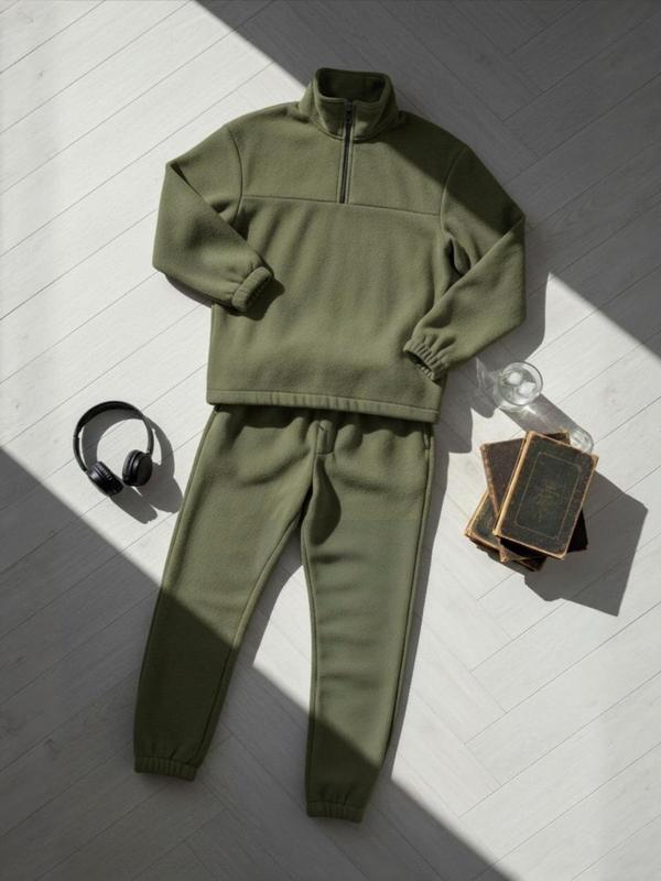 Теплый мягкий флисовый костюм кофта и штаны удобный повседневный комплект полар зимний осе...