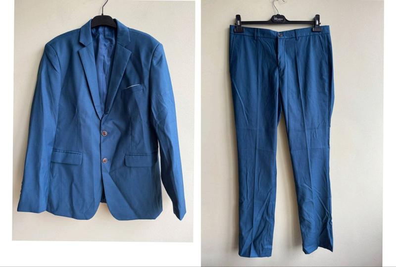 Мужской классический костюм пиджак + брюки Новый, без броков, стоковый товар из складов Amazon В комплекте: пиджак и брюки Размер: +- L (отсутствие бирка с размером) Замеры: Пиджак: Полуобхват груди- 54,5 Полу обхват талии- 50,5 Полу обхват низа - 56,5 Длина от горловины спереди- 74 Рукава - 63 Плечи - 45,5 Штани: Полу обхват по поясу - 45,5 Пол обхват бедер- 52 Боковой шов - 107,5 Шаговый шов - 82 Посадка - 26,5/38 Ширина штанини - 19 Состав: Состав: 80% полиэстер, 20% вискоза