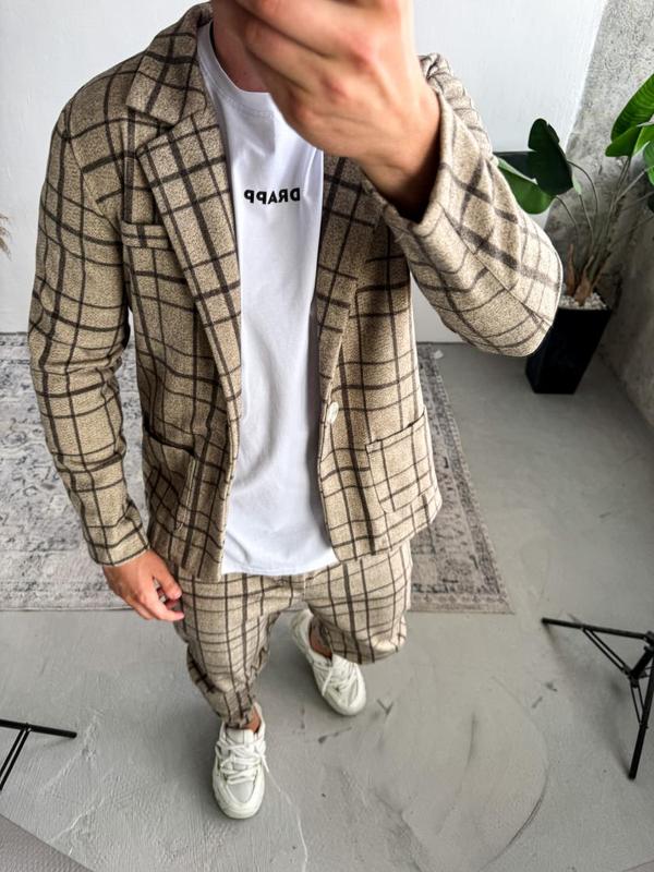 Мужской костюм пиджак + брюки в клетку приталенный, комплект двойка большие размеры