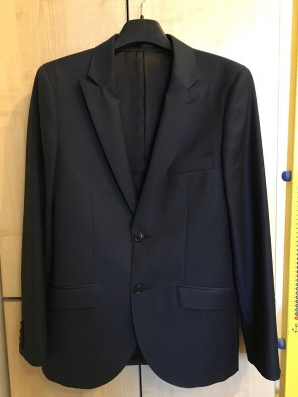 Костюм в стані нового {одягався один раз}. Розмір - S Складу - 52% вовна, 48% поліестер. Піджак {розмір UK36} Довжина рукава - 61 ПОГ - 46 Довжина по спині - 70 Штани c манжетом {розмір 30S} Довжина по внутр шву - 71 Напівобхват талії - 39 Ширина штанини - 18