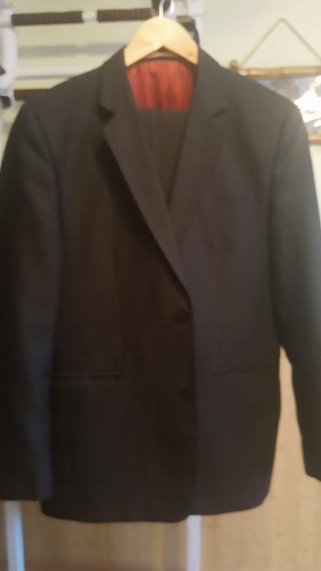 Пиджак Плечи44 Грудь52 Длина рукава62 Длина изделия77 Брюки Пояс43 Бедра50 Посадка спереди30 Длина106 Выход20 костюм черный в рубчик весна. продаю свои вещи поправился