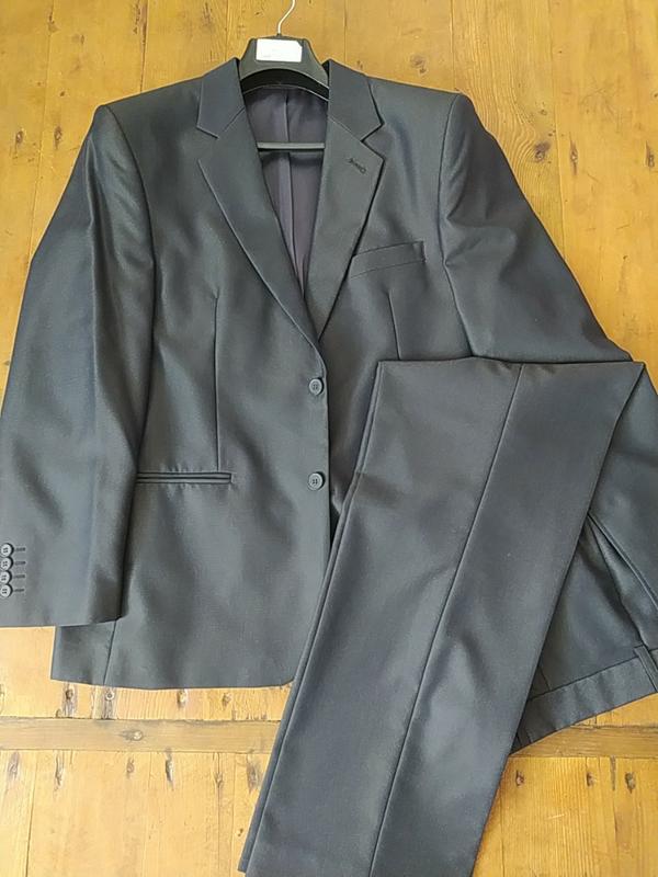 Костюм одет один раз в абсолютно новом состоянии, брюки пот 44, по бедер 52, шаг.шов 77, длина 101, пиджак плечи 48, рукав 60,5, длина 76, Пог 53. Всё замеры сделаны по внешней стороне, цвет темно серый, качество супер, рост 164, размер по бирке 50, но ориентируйтесь на замеры