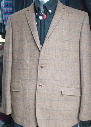 Замечательный полушерстяной пиджак для богатиря. Плечи58, длина рукава 70. Темногорчичный цвет