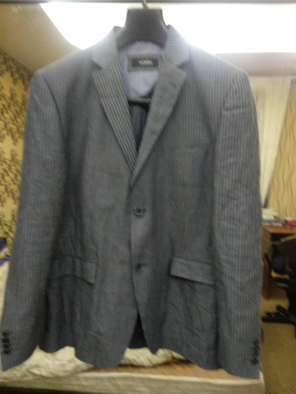 Стан-бомба(не одягався).Англійська фасон(дві фалди).Розмір 50.Склад 100% груботканный льон.Yorn - перший німець, який підкорив модний Париж/Заміри:Плечі 50 см,Рукав 66 см.довжина по спині 77 см.по нижній проймі 60 см