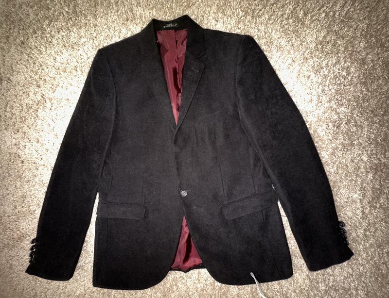 Піджак чорного кольору, тканина велюр Unisex , розмір 52 Заміри скину додатково В мене розмір S, сидить на мені ідеально Стан ідеальний, одягався лише 2 рази