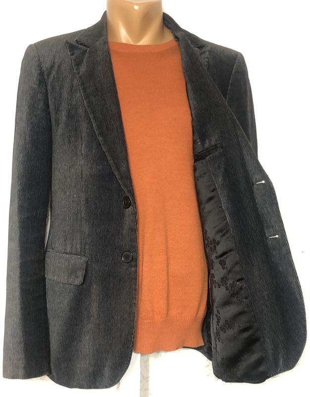Пиджак CASTROMEN велюр, импортный, в тонкую полоску серо- черного цвета, 100% хлопок. Размер 48-50, длина по спинке 72 см, длина рукава 66 см, обхват талии 96 см, обхват груди 104 см. Шлиц- 1 шт.