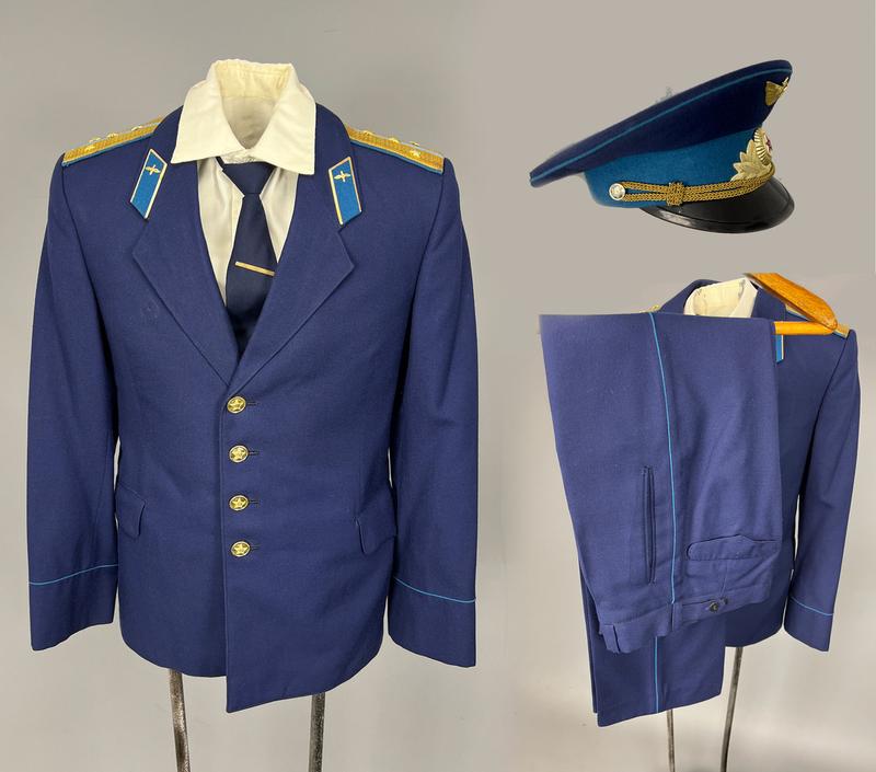 Форма випускника КВВПАУ. м. Курган, Ексклюзив пошита в Ательє м. Курган при першому отриманні лейтенанстьких погонів. Ця людина залишила військову службу, стала бізнесменом та була обрана депутатом Верховної ради України Всі речі в оригіналі в хорошому стані. Є невеликі сліди використання на сорочці розмір М Заміри піджака: плечі 43 см, рукав - 65 см, півохват грудей - 51 см, Півохват талії 46 см ширина знизу - 49 см довжина по спині - 73 см Заміри сорочки плечі 42 см, Півохват грудей - 49 см, рукав - 62 см, довжина - 66 см, Заміри брюк Пояс - 39 см, Півохват бедер - 50 см, кроковий шов - 76 см, ширина штанини знизу - 23 см, довжина 102 см, Заміри пояса довжина - 80 см, ширина 4.5 см. Фуражка - розмір 54 см, плечі - 45 см півохват грудей - 60 см рукав - 61 см півохват ширини знизу ~ 65 см довжина - 82 см