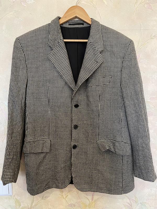 Пиджак Может быть как оверсайз 100% вовна В гусячу лапку На подкладке Внутри вшиты подплечники (плечевые накладки) Подойдет на объем груди до 110см