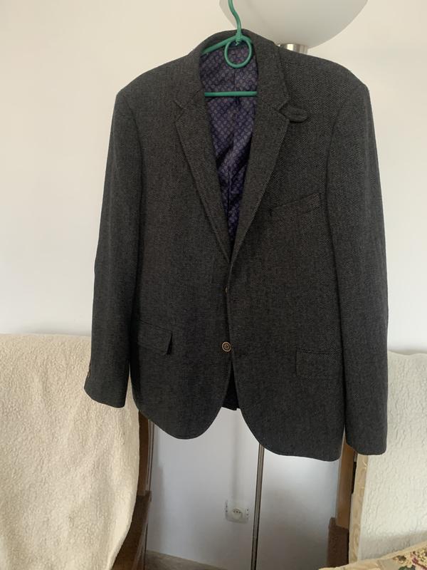 Длина-76, плеча-16, рукава-65, ширина плеч-47, полуобхват груди-55, талии-53, состав ткани:33- шерсть, 62- полиэстер и т д, подкладка- полиэстер.