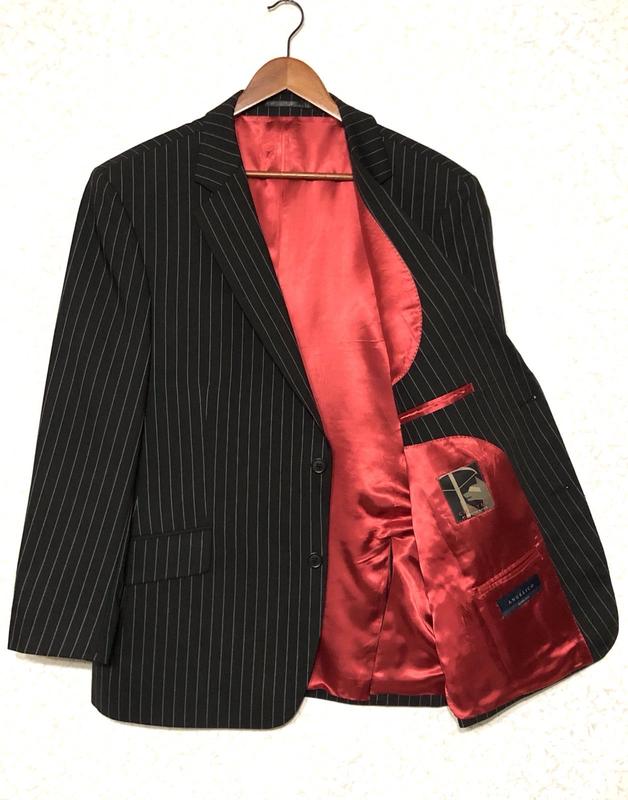 Стильный пиджак в тонкую полоску с акцентной яркой подкладкой Chester, 50-52 размер, замеры по изделию: пог 60 см, пот 55 см, длина 76 см, рукав 62 см, плечи 50 см