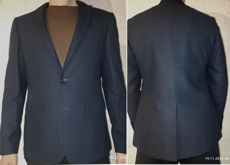 розмір вказаний 50 Плечі 47 см, ширина від пахви до пахви58 см,талія 53 см,низ58 см, рукав62 см Довжина по спині ( без коміра)76 см склад:100% шерсть,стан ідеальний made in italy колір темно синій ( ненасичений)