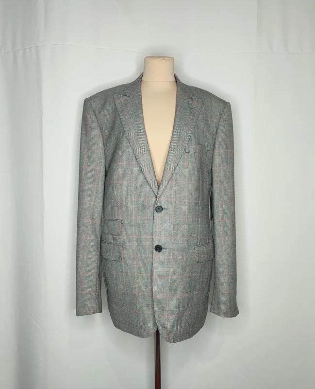 Пиджак шерстяной, серый, в клетку, принт гусиная лапка