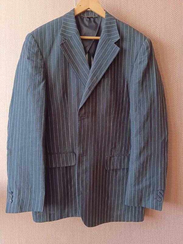 Чоловічий льняний піджак Perry Ellis , колір- темно- синій в голубу та білу смужку. Склад: 98% льон. Розмір 42. Заміри : довжина по спині 83 см, плечі 49 см, в грудях 59 см, довжина рукава 69 см. Стан ідеальний.
