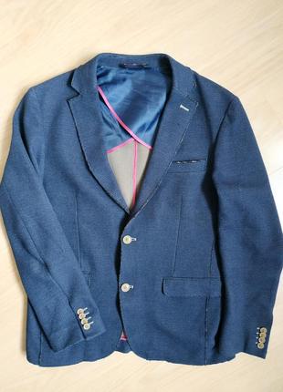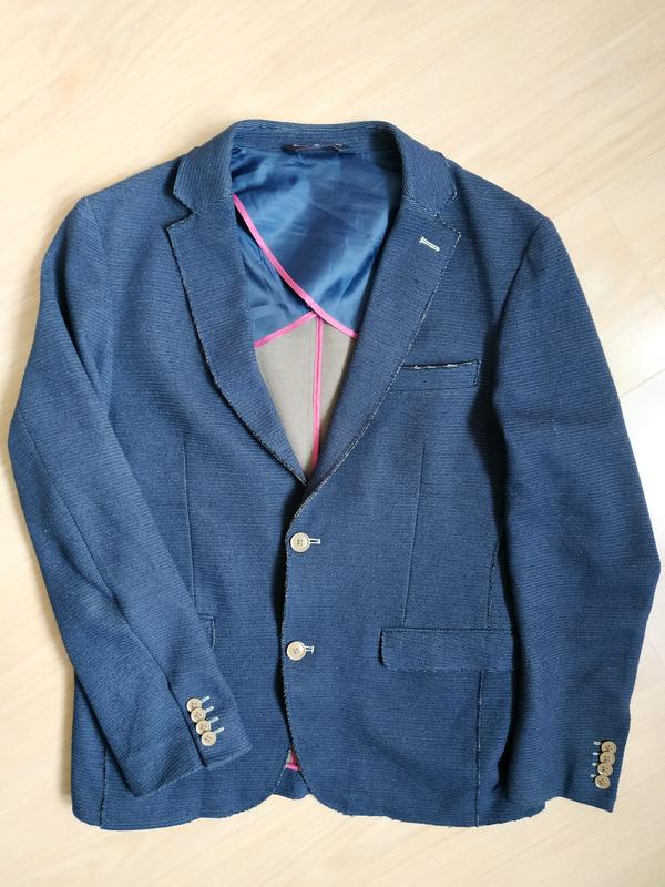 Стильный новый (сток) пиджак из современной ткани с эффектом "рваного края". Выглядит ярко и необычно. Никакого отношения к секонду не имеет. Слегка притален. ПОГ-53, рукав от плеча-65, плечи-46, по спине от шва ворота-68.