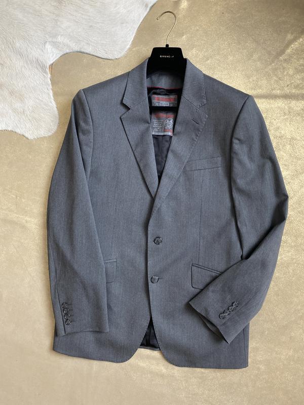 Классический пиджак с подплечниками серого цвета в идеальном состоянии. Сток.
