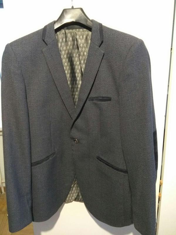 Пиджак отличного качества, как ткани, так и пошива. Идеальное состояние. Надено один раз. Серо-синий цвет, интересная клетка. Ориентируйтесь на замеры: ПОГ - 51см, ПОТ - 47 см. Длина рукава от плеча - 63 см, от подмышки - 43 см. Ширина в плечах - 44 см Длина изделия по спинке - 70 см. Доставка НП, УП