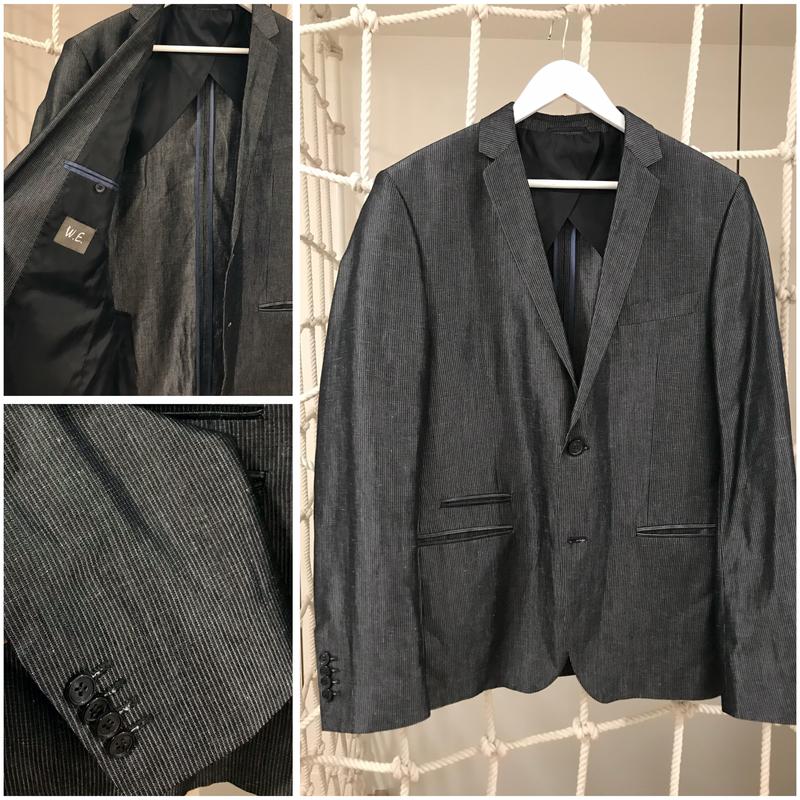 Легкий пиджак блейзер из коттона без подкладки Серый в тоненькую полоску Ткань полированная так что имеет легкий ненавязчивый блики Стильное решение на теплую погоду для делового стиля, или смарт кэжуал Надевался всего 1 раз (вымогал дресс-код🙂)