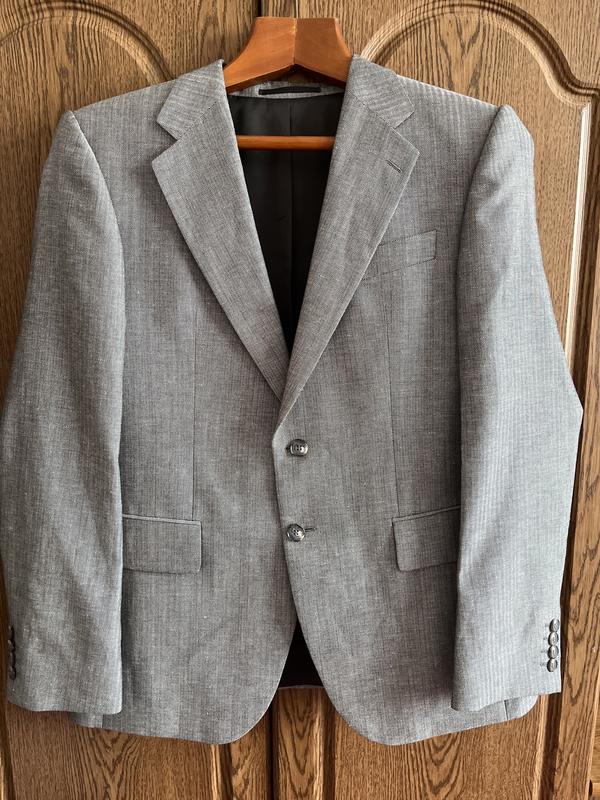 Жакет фирмы joop серого цвета елочка. Плечи 48 см, рукав 65см, длина 76 см. Новый, без бирки. Размер указан 48.