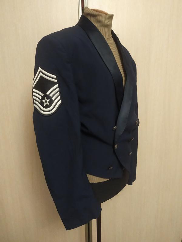 пиджак в очень хорошем состоянии. похож на шерсть с добавкой застегивается как на мужскую, так и на женскую сторону. фирменные пуговицы и нашивки на рукавах. есть подплечники. длина спереди 62см длина сзади 55см пог 55см полуширина по низу 45см плечи 50см