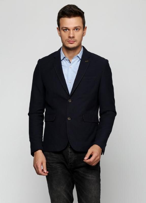 пиджак на подкладке, застегивается на пуговицы. Имеет три наружных и один внутренний
