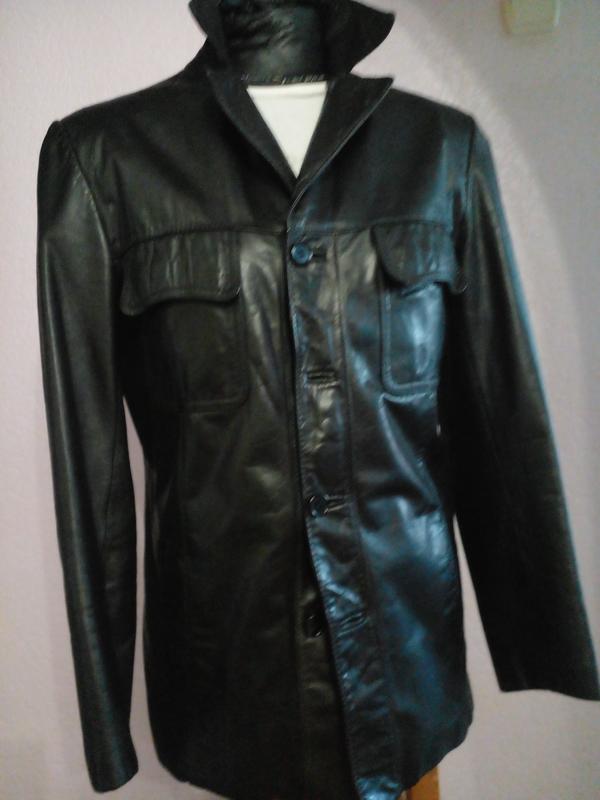піджак з натур . високоякісної еластичної шкіри . довжина по спині 68 см плечі 44.5 см довжина рукава. 62 см пог 51 см поб 49 см . Без подряпин і потертостей.