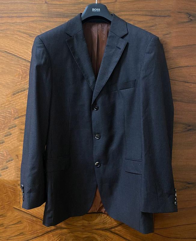 Пиджак от Hugo Boss выполеннный из премиальной шерсти. Само сукно поставляемое фабрикой Loro Piana. Безупречная, статусная вещь. Приталеный силуэт. Гипоаллергенная шерсть ламы, подкладка из вискозы с отливом. Минеральные пуговицы. в комплекте идут родные вшиваемые плечики, карманы перед ноской стоит распороть. Плечи - 46 Подмышки - 55 Длинна - 80 Рукав - 64