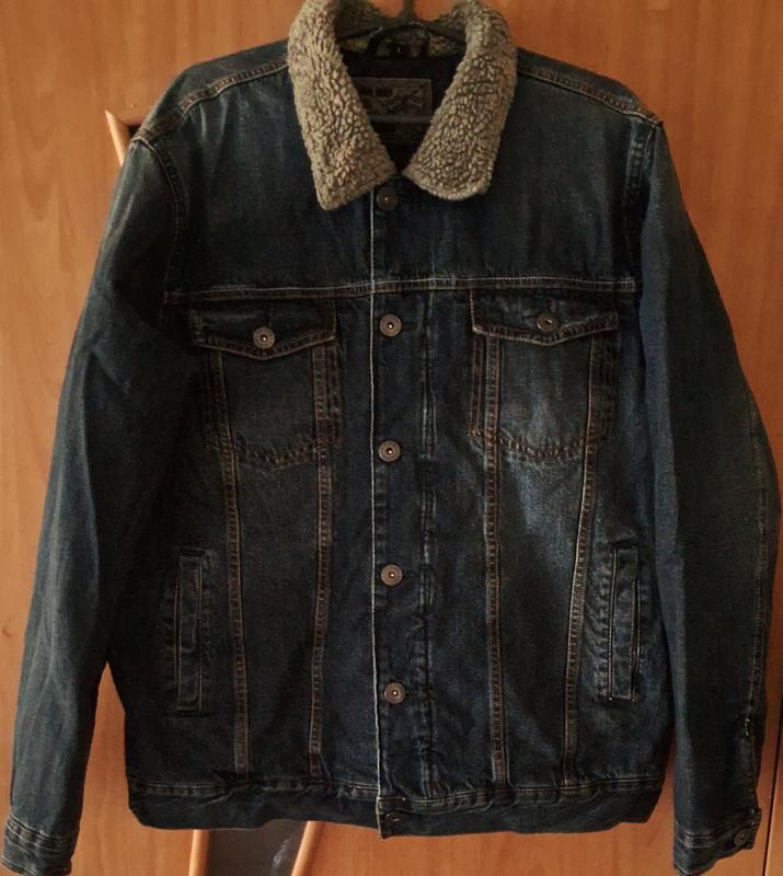 Джинсовый Пиджак Теплый.Оригинал.Размер L.Длина 66.5см.Ширина 60мм.Длина Рукава От плеча 63см.От Шеи 81см