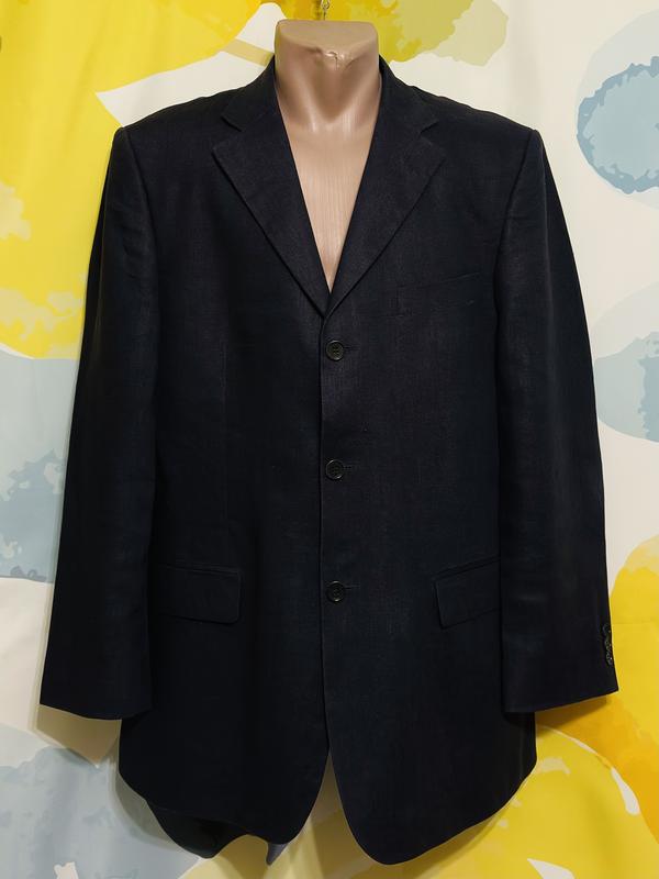 Оригинальный классический льняной пиджак / блейзер balmain paris темно-синего цвета eur l...