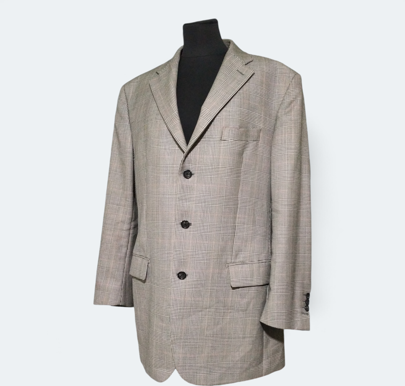 Длина по центру спинки 83см, спереди от плеча 84-85см Пог подмышки 60см Пот 58см Поб (низ кишень) 61-62см Плечи 51см, с подплечниками 54-55см Рукав 63см Все карманы функциональны На подкладке 4 кармана Ткань костюмная 100% натуральная шерсть. Плотность как на кардиган Подкладка 100% вискоза Две боковые шлицы Модель new bond street Размер производителя 54R без дефектов Перед заказом сравнивайте замеры