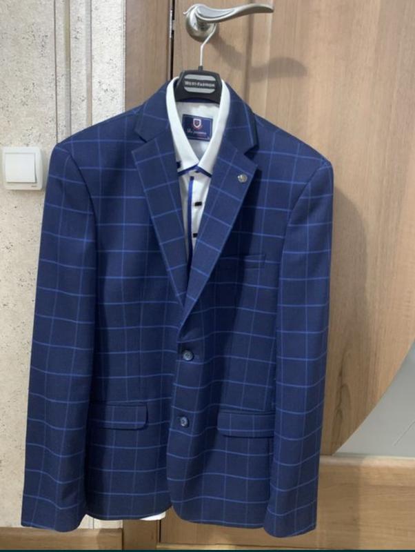 Продається чоловічий піджак в клітинку, синього кольору. В подарунок до піджака йдуть дві рубашки, біла та в стилі легкого джинсового кольору. Піджак в ідеальному стані, розмір 46/176. Рубашки в розмірі M та L.