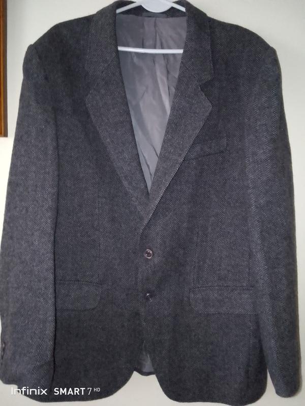 на бірці-42р.S полуобхват груди-58см длина рукава (от плеча к кисти)-64см полуобхват талии-54см полуобхват бедер-60см низ-62см длина пиджака-80см ширина в плечах-48см между лопатками-45см по спинке-77см 100%-viskose-вискоза 64%-wool-шерсть,вовна 23%-viskose-вискоза 13%-polyamid-nylon-полиамид-нейлон на подкладке спереди слева маленький карман "обманка" по бокам внизу по одному глубокому карману спереди защипывается на 2 пуговицы внутри пиджака с правый-один глубокий карман слева-1 большой и 2 маленьких глубоких кармана без дефектів! в идеальном состоянии!
