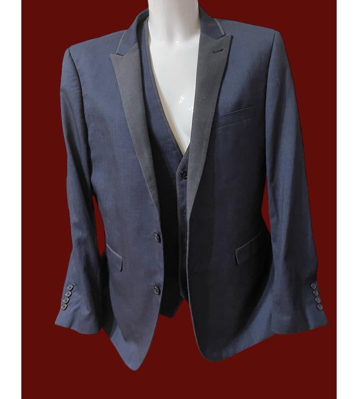 піджак з желєтом чоловічий 44 R, заміри на фото Колір сіро-синій Стан ідеальний