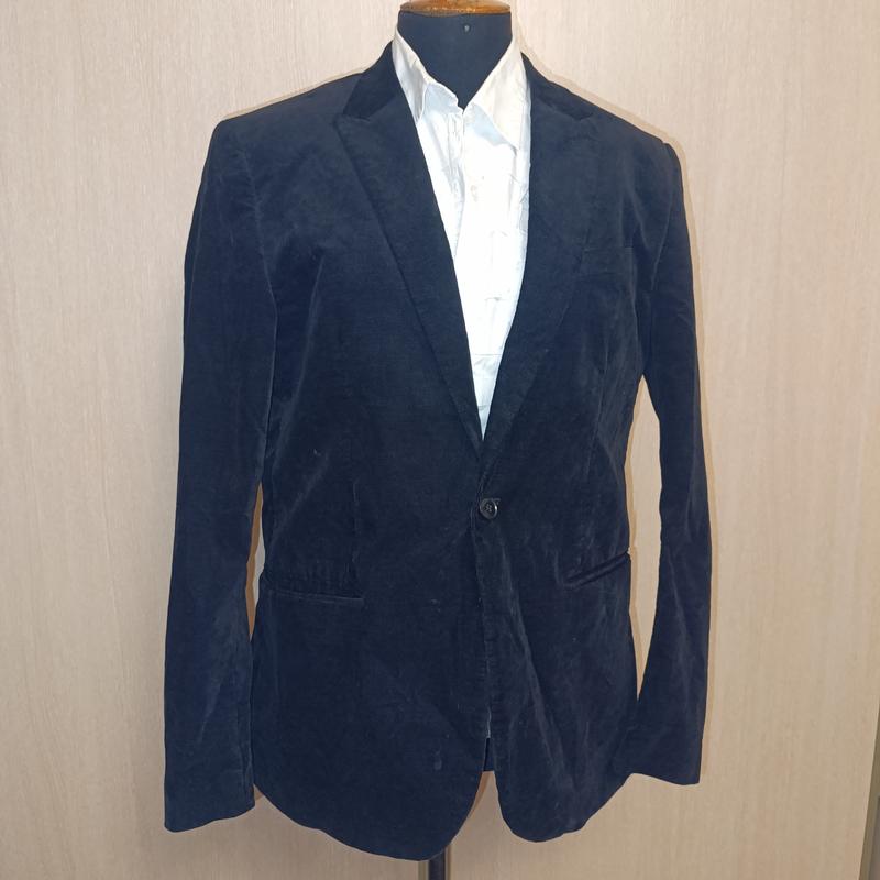 пиджак, корее всего, новый 98% хлопок. застегивается спереди на одну пуговку. по бокам карманы без клапанов. есть нагрудный карманчик и петлица на лацкане. сзади два разреза. нитки, которые прихватывают разрезы сзади даже не выпороты. подкладка новая. длина 72см длина рукава 64см плечи 46см ПОГ 52см ПОТ 50см