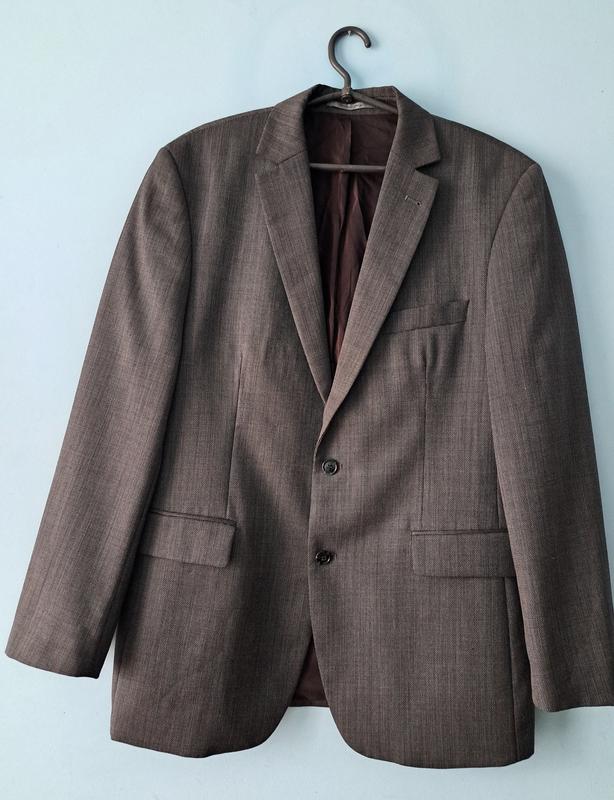 Отличное состояние, карманы еще зашиты, сзади 2 разреза. Верх 70% шерсть, 30% полиэстр.Подклада 100% вискоза. Замерчики на фото