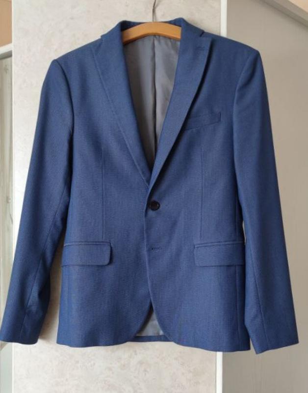 Стильный пиджак светло синего цвета (переплетение синей и голубой нити). Структура ткани не гладкая, а интересная, с переплетением, видна на 3-5 фото. Производство Марокко. Станет отличным луком на праздничное событие, в офис. Пиджак хорошо совещается как с рубашками, так и с футболками поло белого, синего или голубого цвета. Хорошо смотрится в сочетании с джинсами синего цвета. Стан идеален, дефектов нет. Надевался один раз. Пожалуйста, для экономии своего и вашего времени по отношению к поездкам почты, перед заказом сверьте на своей одежде замеры для сравнения сirьными фото и указанными замерами ниже. Замеры задней части пиджака: длина 69 плечи 45 ширина под рукавами 48 ширина на уровне первой верхней пуговицы 45 длина рукава 63 ширина рукава зверху 16.