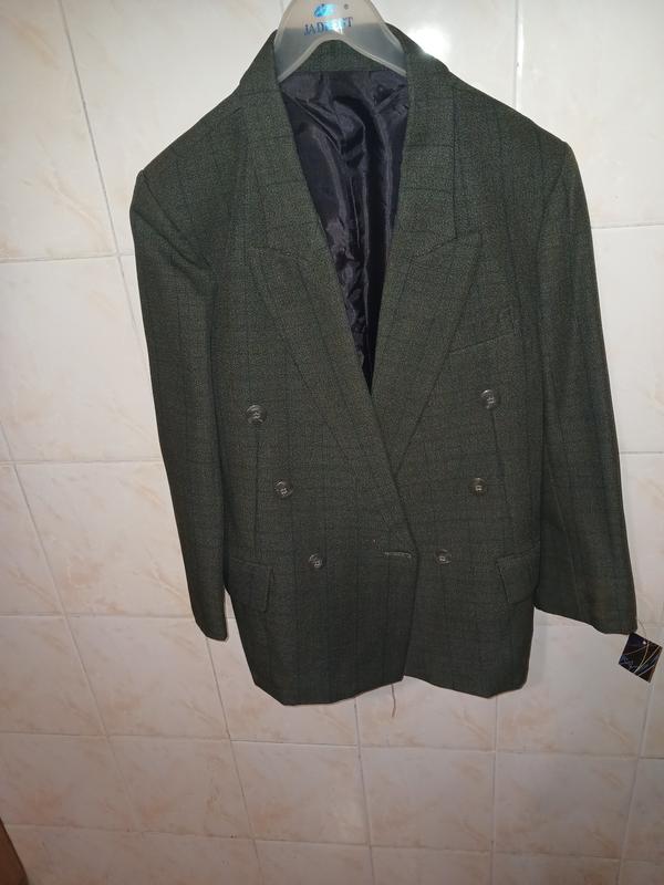 Пиджак на мальчика подросткоаый. Новый Цвет тёмно серый. Длина рукава 50 см. Под мышками 44 см. Длина 61 см.