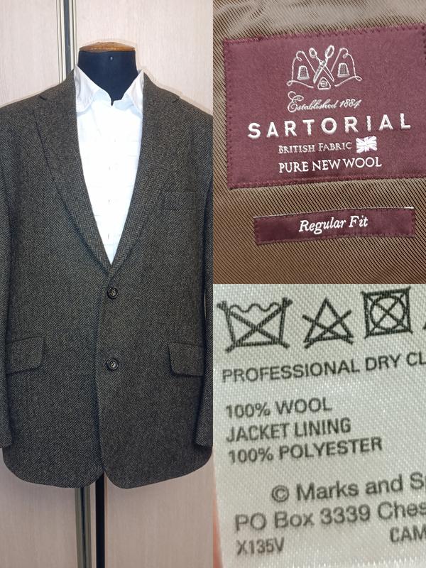 пиджак новый. 100% шерсть два кармана по бокам есть нагрудный карман и петлица в лацкане. сзади два разреза длина 74см длина рукава 62см плечи 48см ПОГ 57см ПОТ 54см