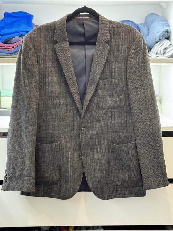 Стильный и качественный пиджак от британского бренда Jeff Banks - идеальный вариант для современного мужчины или женщины которая любит пиджаки оверсайз. Линейка 24:7 создана для активного темпа жизни: комфортный крой, приятная подкладка, современный дизайн. Модель Slim Fit подчеркивает фигуру, подходит как для офиса, так и для неформальных выходов. Состояние отличное, одевался всего несколько раз. Материал: мягкий, приятный на ощупь, с качественной подкладкой. Цвет: серый с едва заметной клеточкой. Цена: 599 грн Пишите — ответьте на все вопросы!