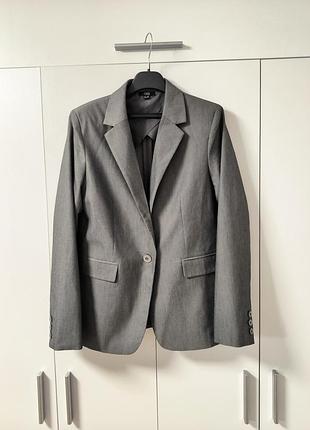 Пиджак серый, в идеальном состоянии. Подкладка частичная, как на фото, поэтому не жаркий на лето.. Размер от производителя 40, но красиво сядет на S-M. Замеры: длина по спинке - 69 см, длина рукава - 62 см.
