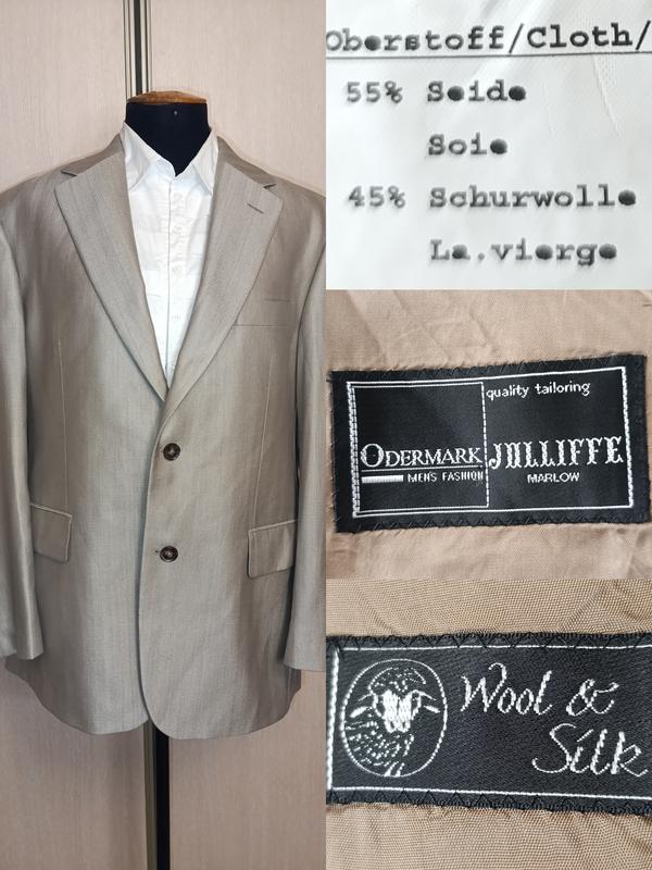 пиджак в идеальном состоянии. 55% шелк 45% шерсть на левом рукаве сзади есть нюанс ткани. это именно не приобретенный, а "родной". в носке ничего не а дно! ткань очень мягкая и шелковистая! прекрасный состав! длина 74 длина рукава 61 плечи 48 ПОГ 58 ПОТ 53