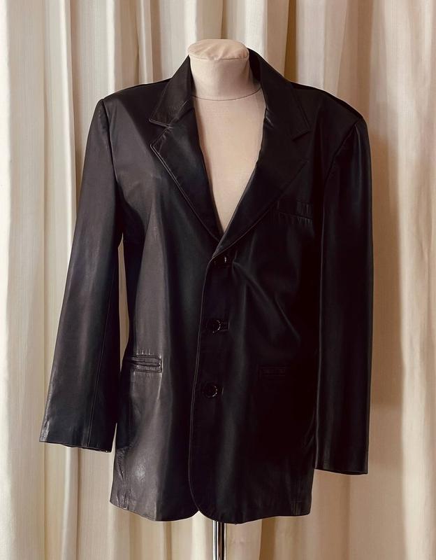 Піджак чоловічий з натуральної шкіри чорний NEXT🛍️❤️🔥 Розмір - UK 10/ EUR 38/ USA 6/ M / 44-46. Склад : 100% натуральна шкіра. Підкладка: 100% поліестер. Виробник Китай. Піджак з натуральної мʼякої шкіри з застібкою на ґудзики та відкладним коміром. Кокетка спини з еко-замші. На підкладці. Врізні кармани переду та один нагрудний. Додаткові заміри: повна довжина 78 см, ширина плечей 48 см, довжина рукава 62 см, напів обхват грудей 55 см (повний обхват 110 см), напівобхват талії 50 см (повний обхват 100 см), напівобхват стегон 54 см (повний обхват 108 см).