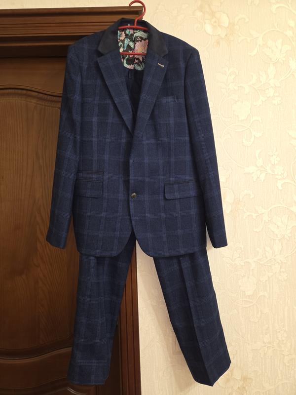 ткань приятная, мягкая. не мнется, размеры: пот-48, длина брюк-107см, пиджак: пог-55см, длина-74см, длина рукава-65см