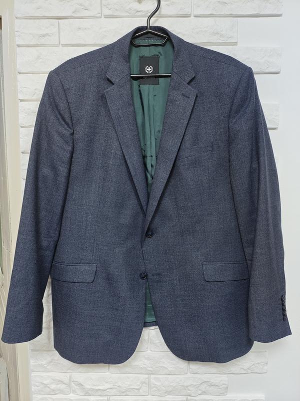 легкий мужской пиджак серо - голубого цвета. Ткань с содержанием шерсти плечи 46 см, полуобхват груди 57 см, рукав 61 см, талия полуобхват 53 см, длина по спине 72 см + воротник