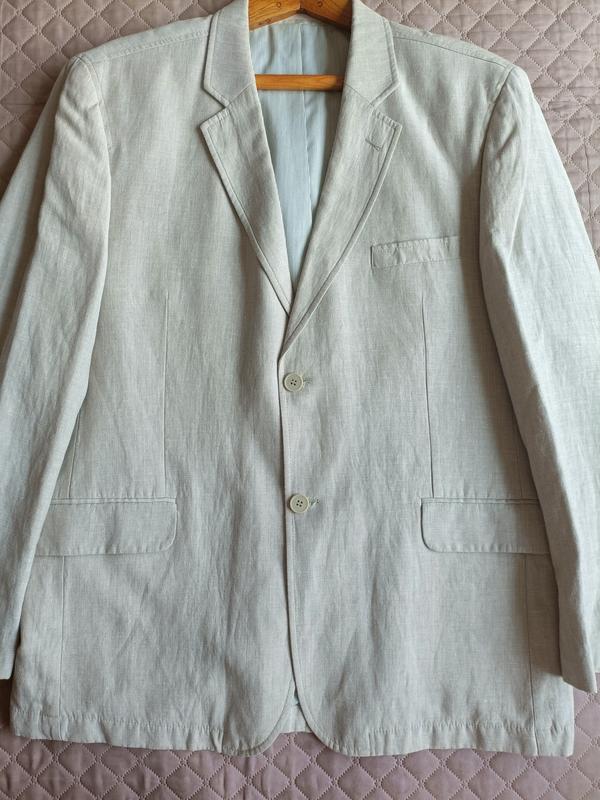 Пиджак мужской, цвет- беж, состав: 50% лен, 18% вискоза, 32% полиэстер, на подкладке: 35% хлопок, 65% полиэстер. Размер 58. Замеры: длина по спине 80 см, плечи 52 см, в груди 62 см, длина рукава 68 см