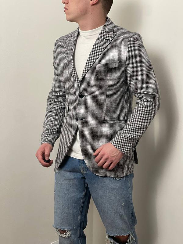 Сірий легкий піджак Massimo Dutti в принт гусячої лапки Розмір: М-Л Стан: Нового Оплата: Безпечний платіж, оплата на карту, оплата при отриманні НП Для замовлення або будь яких питань звертайтесь в приват